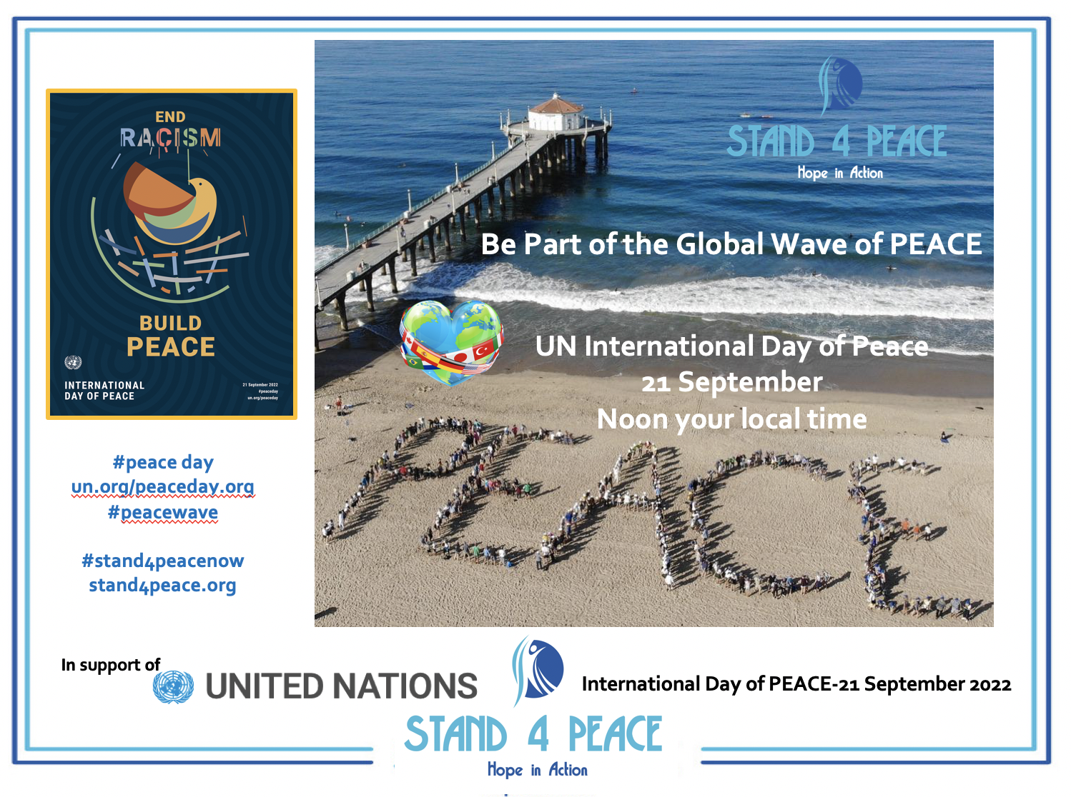 The United Nations suggests by promoting International PEACE Day and what it STANDS for through our ACTIONS, we encourage more people to take ACTION for PEACE in their own lives, positively impacting the lives of others. We can all be part of a movement towards a culture of PEACE and tolerance in the family, in schools, in the workplace, in the community and ultimately in society at large.